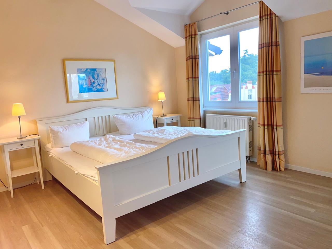 Das 18 qm große Schlafzimmer verfügt über ein breites Doppelbett, einen Kleiderschrank und eine kleine Sitzecke, während das Bad mit Dusche, WC, Waschbecken, Ablagen und Föhn eingerichtet ist. Zusätzlich bietet die Wohnung ein separates Gästezimmer mit Einzelbett, Schrank, Sitzgelegenheit und TV, das neben der Wohnung liegt, über das Treppenhaus zugänglich ist und sich besonders für Jugendliche oder erwachsene Mitreisende eignet. In der Tiefgarage steht Ihnen ein kostenloser Stellplatz zur Verfügung, ebenso Platz für mitgebrachte Fahrräder. Wir freuen uns auf Ihren Besuch!